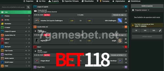A aposta bet118 oferece aos jogadores a experiência mais conveniente de apostas em eSports!